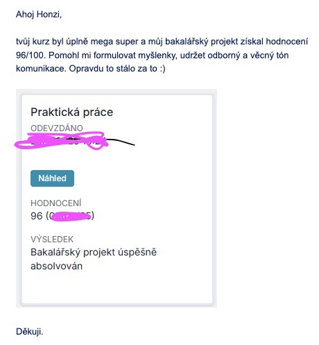 Konkrétně zjistíš, kde hledat zdroje pro teoretickou část, jak se zdroji pracovat, jak psát opravdu kvalitní texty, přepisovat a parafrázovat tak, aby to bylo nerozeznatelné od lidských textů, jak citovat a spoustu dalšího…